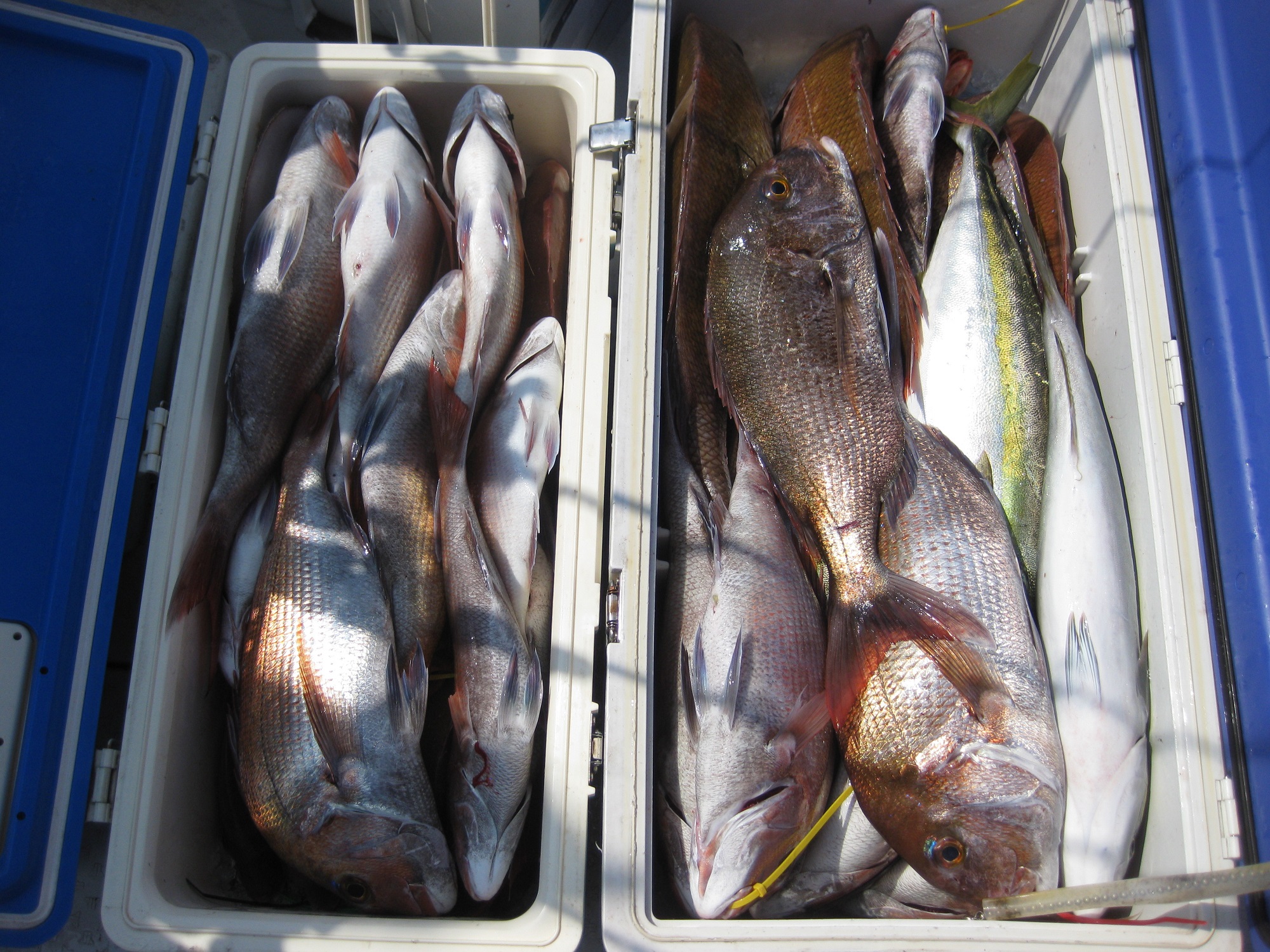 12時すぎ~タイラバでしたが?☂が予想されイカが中止になると困るので、先日より多いヤズも織り交ぜながら♪5時まで釣ってこの後はケンサキイカに!バリバリでした♪残念ですが、船長も電池切れでイカ写真なしですが、多分40杯~70杯オーバーです。22時納竿のイカメタルでの釣果です!